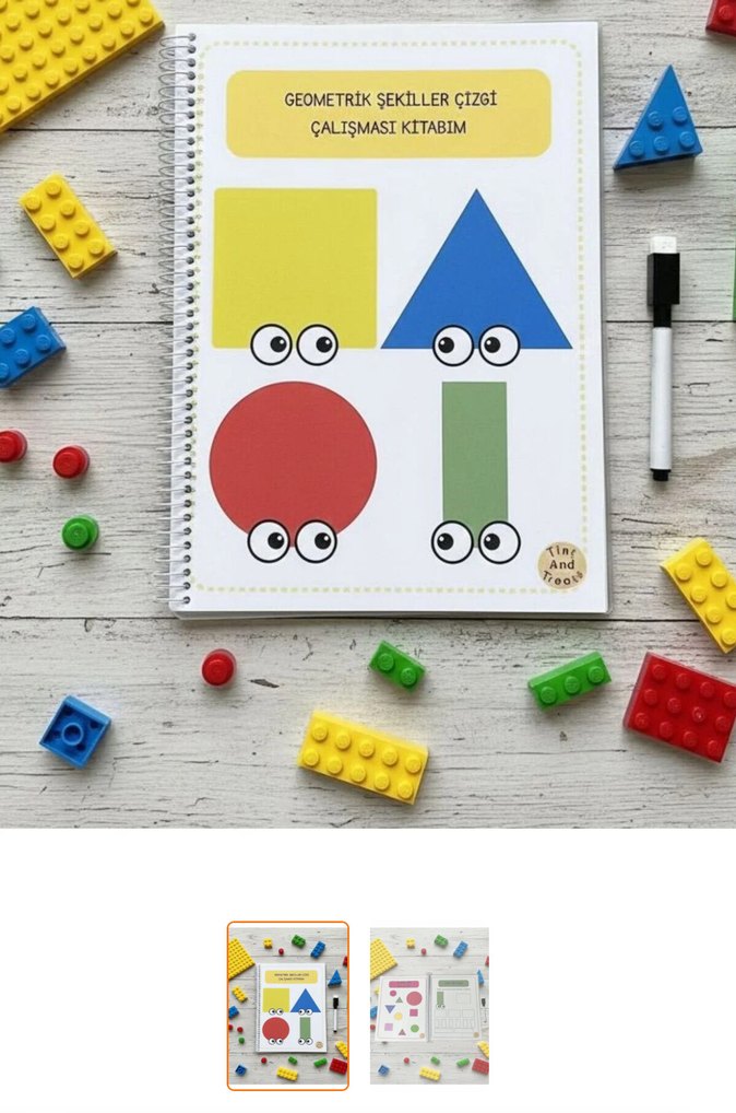Geometrik Şekiller Çizgi Çalışması Kitabım – 8 Sayfa (Kalem Hediyeli) Çocukların temel geometrik şekilleri tanıması ve çizgi takibi becerilerini geliştirmesi için hazırlanmış laminasyonlu – yaz–sil özellikli eğitim kitabı. Kitap toplam 8 sayfadır ve 4 temel şekilden oluşur: Kare – Daire – Üçgen – Dikdörtgen Kitap İçeriği (Her Şekil İçin 2 Sayfa): Çizgi Çalışması Sayfası Şeklin noktalı çizgileri üzerinden geçerek şekli tamamlar Şekli Bul Sayfası Karışık şekiller arasından doğru şekli bulup işaretler “Kareyi Bul”, “Üçgeni Bul”, “Daireyi Bul”, “Dikdörtgeni Bul” etkinlikleri Toplam: 4 şekil × 2 sayfa = 8 sayfa Özellikler: Tüm sayfalar laminasyonlu → yaz–sil özelliği ile defalarca kullanılabilir Çizgi takibi, dikkat, gözlem ve şekil tanıma becerilerini destekler Sade, açık ve çocuk dostu tasarımlar Hediye Yaz–Sil Uyumlu Kalem HEDİYE Kimler İçin Uygun? 3 yaş ve üzeri Okul öncesi Özel eğitim İlk şekil ve çizgi çalışmalarına başlayan çocuklar
