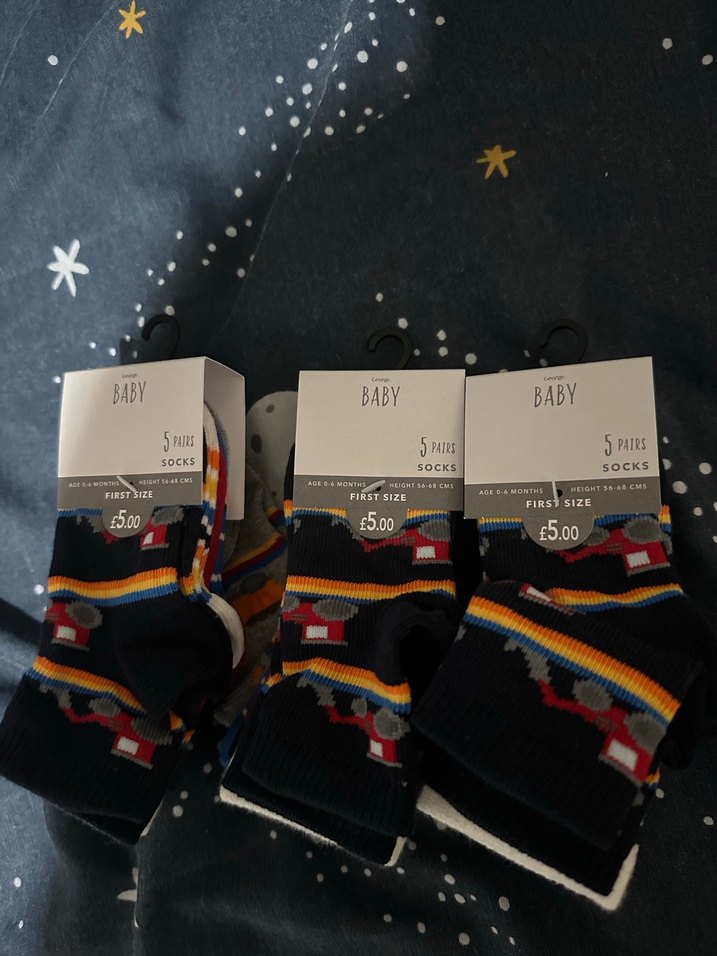 5*3 toplamda 15 adettir dikişsiz en yüksek düzey kalite süper markadır Alan hayrını görsün bedeni 0-6 ay dır Bebekler için çok renkli baskılı koyu renkli çorap seti, 5 çift, £5.00 fiyatıyla sunulmaktadır. Canlı desenlere sahiptir.