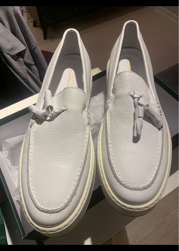 Ürün denenmek için bile giyilmedi. Sıfır ürün 43 numara beyaz tam bir centilmen ayakkabısı