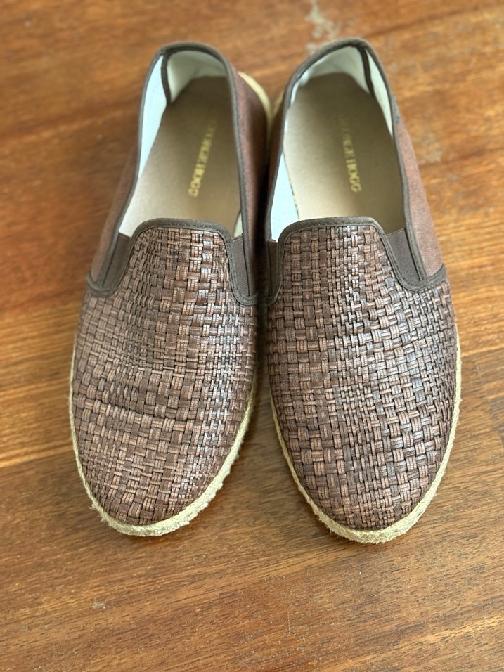 #Kahverengi deri espadril ayakkabılar, dolgu topuklu ve tokalı tasarıma sahiptir. Günlük kullanım için rahat ve şık bir seçenektir.