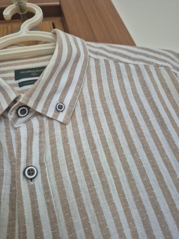 George Hogg Bej Çizgili Keten Erkek Gömlek