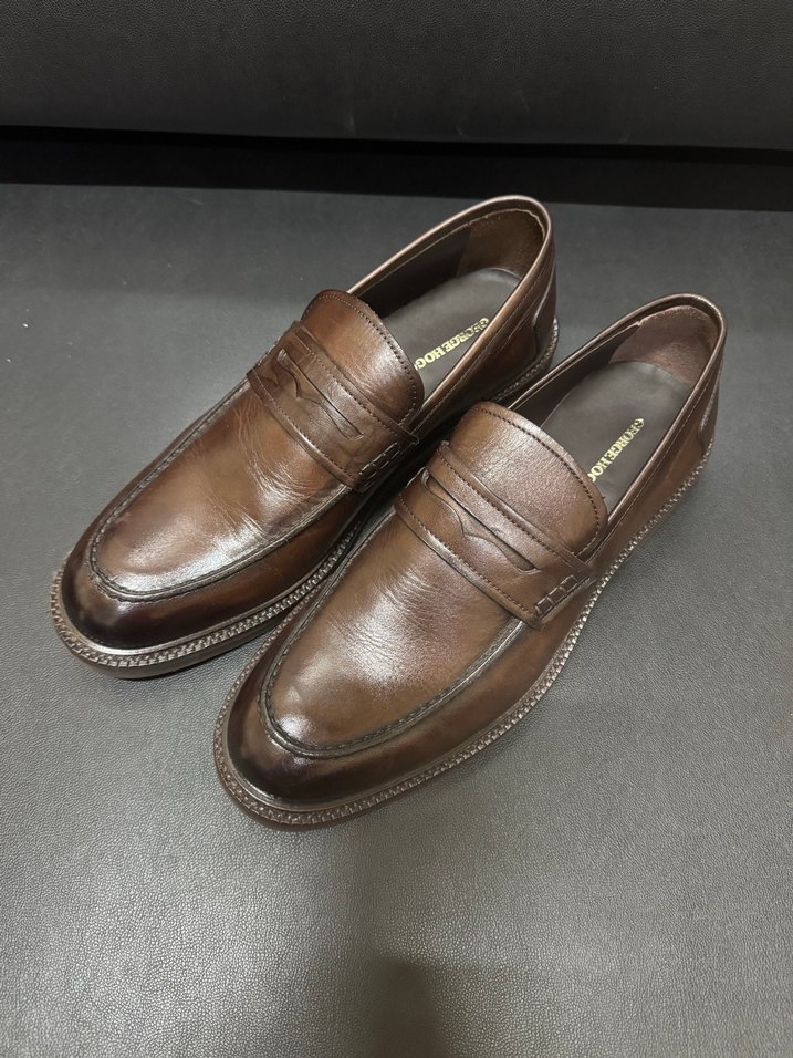 kahverengi deri klasik erkek ayakkabılar, modern klasik tarzda, ofis için şık ve rahat bir seçimdir.