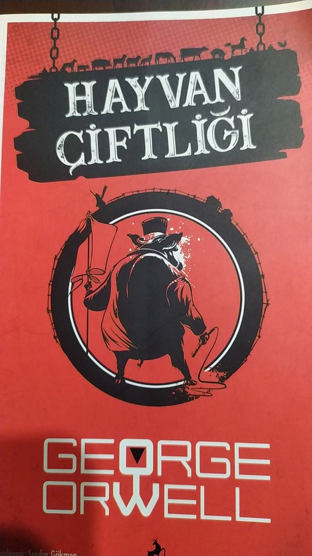George Orwell'in "Hayvan Çiftliği" adlı romanı, bir çiftlik hayvanları grubunun hicivli hikayesini anlatır. Kapağında stilize bir domuz figürü bulunur.