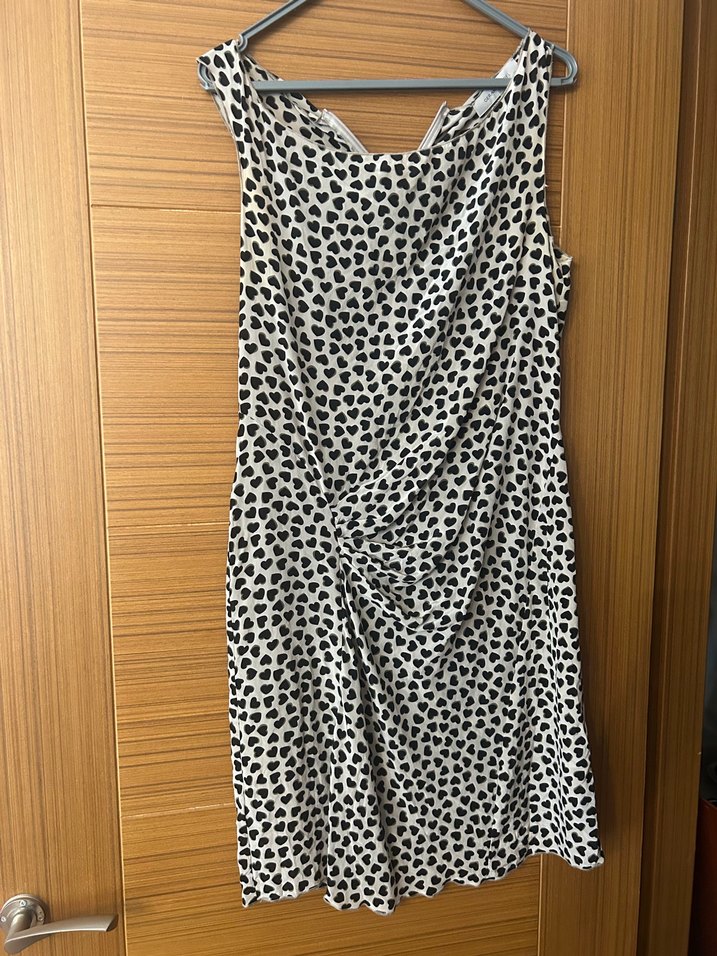 Gerard Darel, %100 ipek, Kolsuz, drapeli ön detayı, bej siyah kalp desenli çok şık elbise .. 40 beden. 38 beden de alabilir.