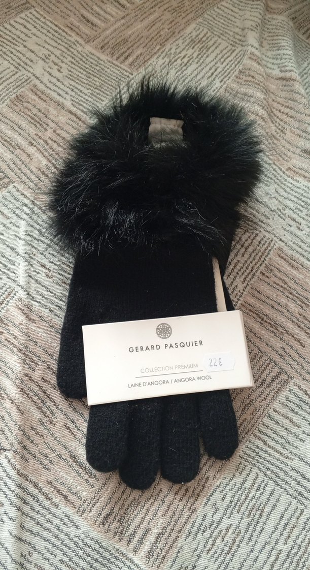 Yumuşak yünden yapılmış gri kadın eldivenleri, kürk detaylarıyla sıcaklık ve gotik tarzı bir araya getirir.Angola yünlü. Fransa'dan alınmıştır. Marka: Gerard Pasquier.