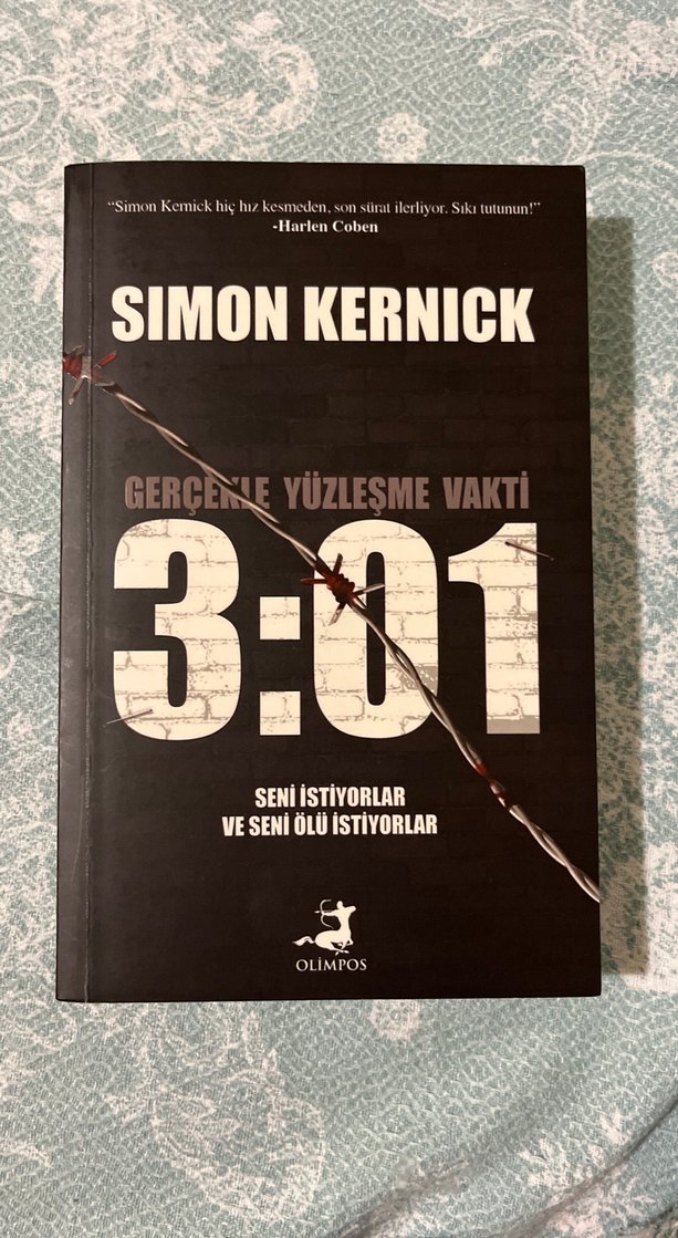 Simon Kernick'in Gerçeğe Yüzleşme Vakti 3:01 adlı kitabı, 'Seni istiyorlar ve seni ölü istiyorlar' sloganıyla dikkat çekiyor. Olimpos yayınlarından.