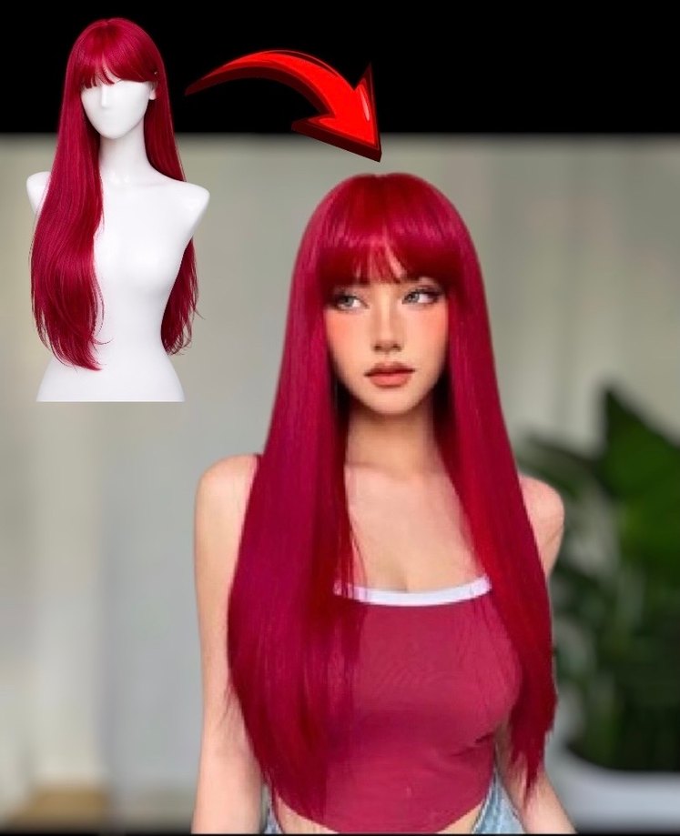 Gerçeğimsi görünüş ve hissiyatlı Kırmızı Uzun Saç Peruk