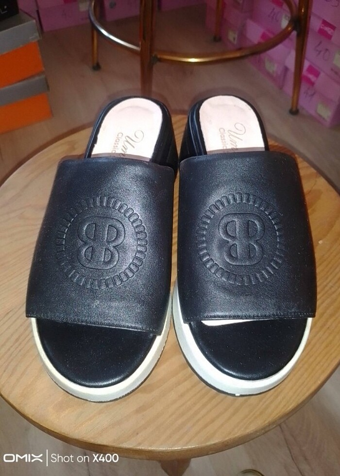 Gerçek deri dolgu topuklu siyah platform sandalet