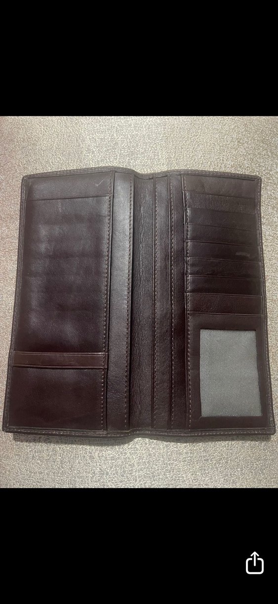 Koyu kahverengi erkek cüzdan, çoklu kart yuvaları ve bölmelerle klasik iş stilinde tasarlanmıştır. Düz, desensiz yüzeye sahiptir.
