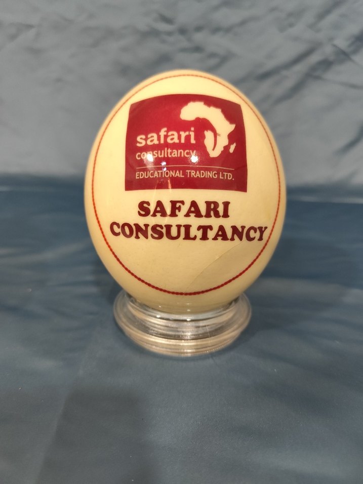Gerçek devekuşu yumurtası altında kaidesi ile beraber üzerinde Safari damgası mevcuttur Verniklenmiş gerçek yumurtadır