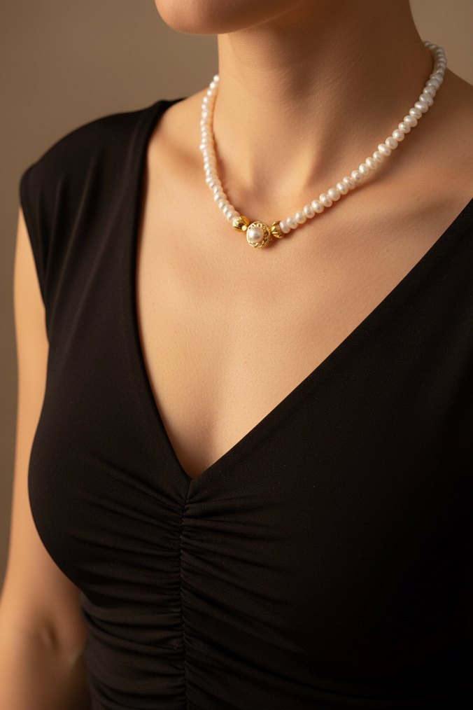 Gerçek Doğal İnci Kolye | Altın Detaylı Zarif ve Şık