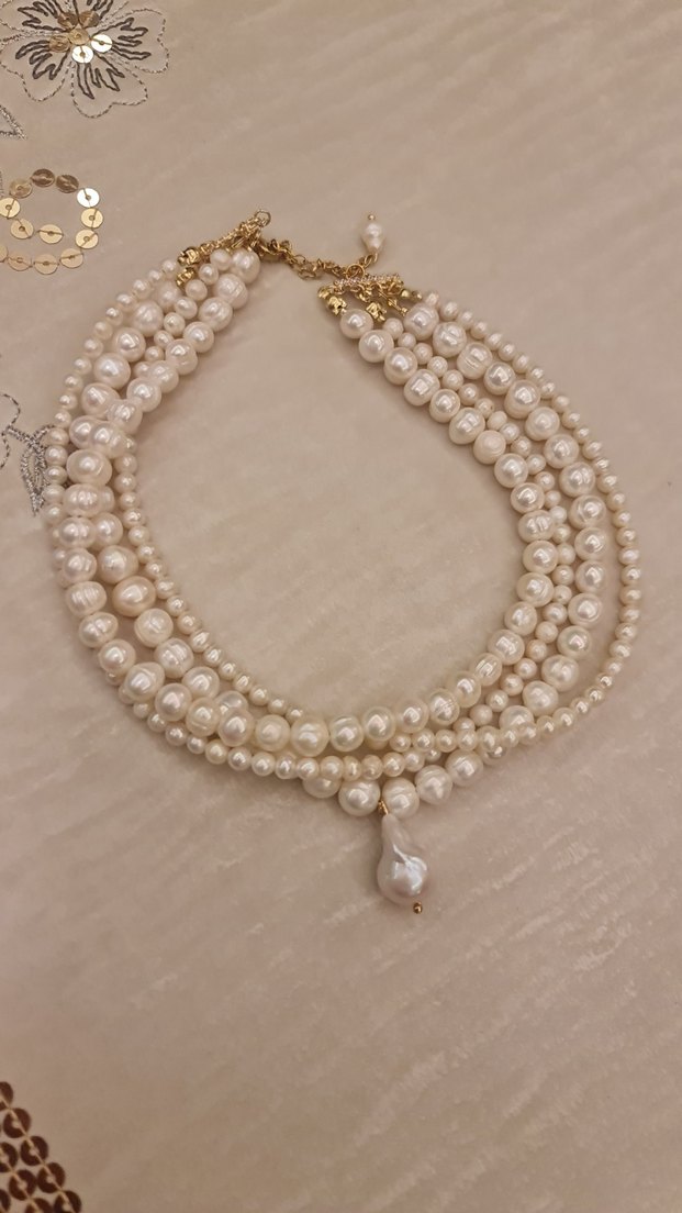 Gerçek incilerden dört sıra olarak olarak tasarlanmıştır. Ucunda barok inci eklenmiştir. Metal aparatları çelik ve kaplama olarak değişir. Sadece Kolye fiyatıdır istenirse küpesi de ayrıca satışa sunulur. Kimyasal ürünler parfüm kolonya şampuan vs temas etmemelidirler . Lütfen inceleyerek alınız takıların hijyen olarak iadesi olmamaktadır. Marka temsilidir öne çıkması için yazdım #takı #doğaltaş #kolye #inci #gerçekinci #gerçek #barokinci
