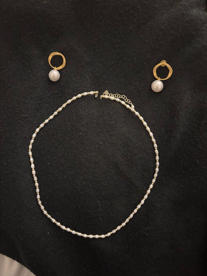 Gercek inci el yapımı tasarım işleri yapan bir markadan aldım. Fişi yok maalesef. Gercek inci olduğu için üstünde çok minik çizikler var fakat belli olmuyor. Altın kaplama çok nazik ve şık bir takım. Tek olarak da alabilirsiniz. İkisini toplam 4.250 tl ye almıştım. Kolye: 2.750 tl küpeler: 1.500 tl