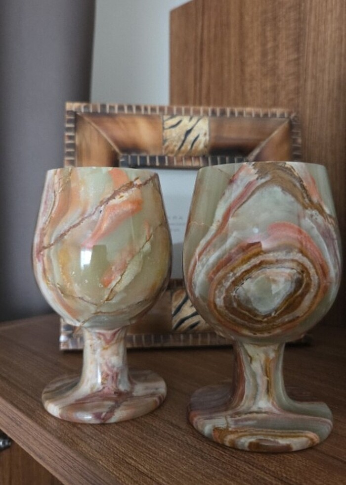 Gerçek mermer şarap kadehleri.Sıfırdır hep vitrinde durdu hiç kullanılmadı.Kusursuz. Marka temsilidir.Adet fiyatıdır.Elimde 5 adet mevcut.