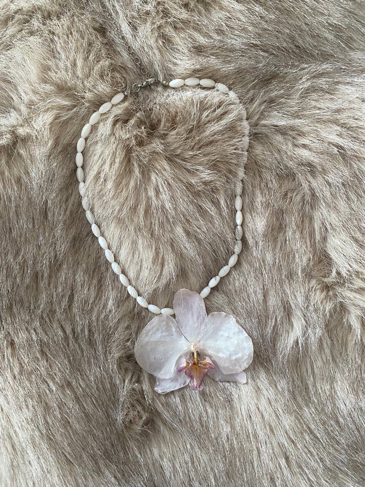 Gerçek orkideden yapılmış Sedef taşlı kolye