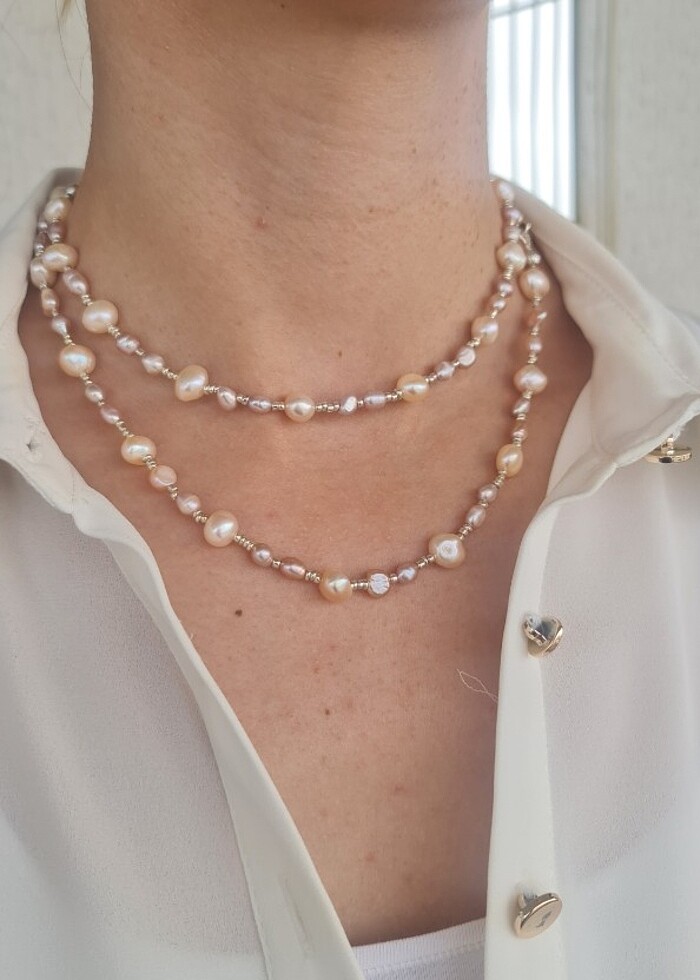 Gerçek farklı boyutlarda pembe inci ile 85 cm olarak tasarlanmıştır. Aradaki minik gümüş aparatlar miyuki boncuk dur kararmaz alerji yapmaz. Kapaması rodyum kaplama pirinçtir. İster uzun olarak ister çift sıra kısa olarak da kullanılabilir siniz.Kimyasal ürünler parfüm kolonya şampuan vs temas etmemelidirler. Lütfen inceleyerek alınız takıların hijyen olarak iadesi olmamaktadır Marka temsilidir öne çıkması için yazdım. #inci #kolye #choker #bileklik #pandora #swaroski #vakko #kolye #takı #tasarım #çeliktakı