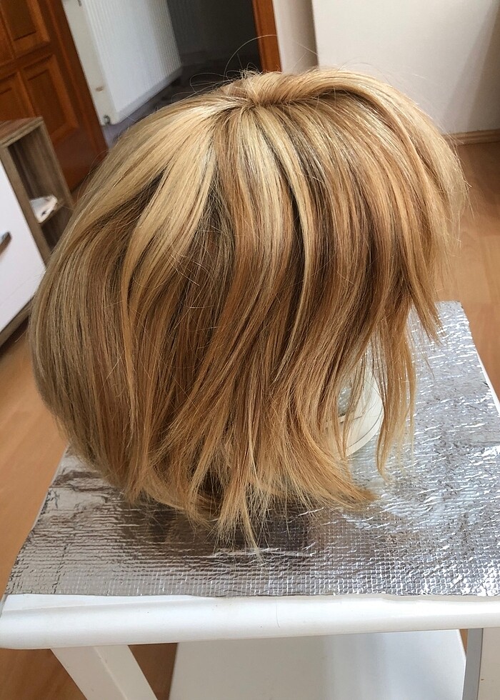 kısa saç modelli severler için Az kullanılmış yumuşak gerçek insan saçı ense de küt modeli yoğun saçlı iade değişim hijyen gereği yoktur tepeden uca 30 cm boyunda #peruk #saç #gerçek #tepelik