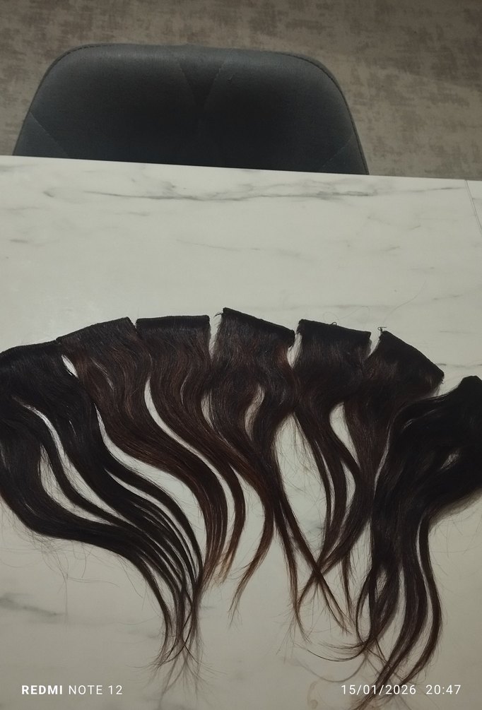 yüzde yüz gerçek saçtır. Boyu 33cm 2 tepe 5 yanlar toplamda 7 parçadır. Aralarında hafif balyaj vardır. Her uygulama yapılır.