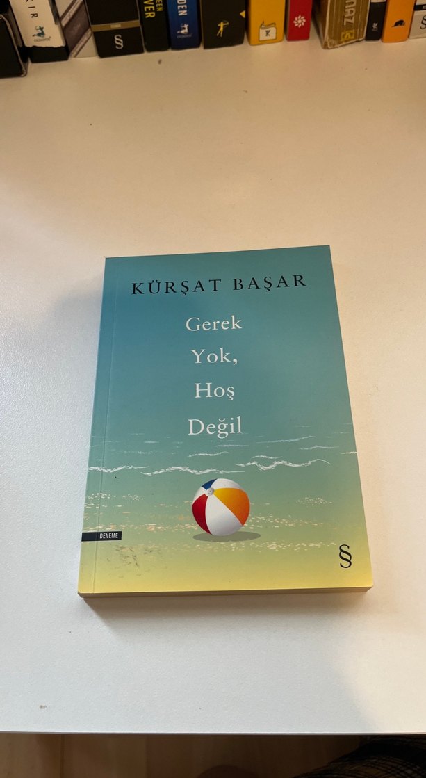 Kürşat Başar'ın "Gerek Yok, Hoş Değil" adlı romanı, sade kapak tasarımı ve deniz temalı görseliyle dikkat çekiyor.