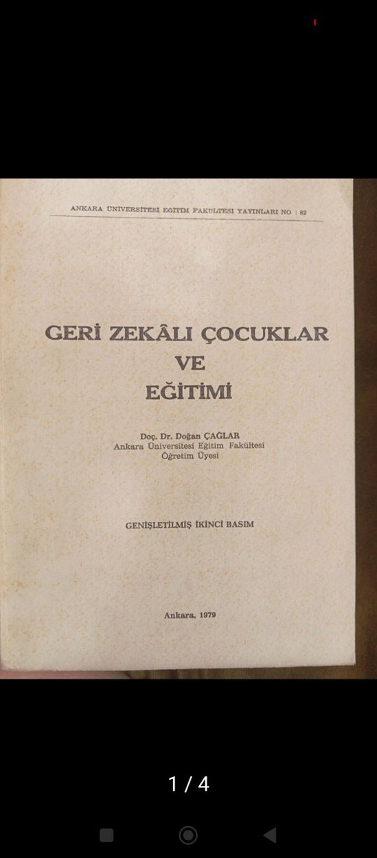 1979 yılında Ankara Üniversitesi Eğitim Fakültesi tarafından yayımlanan, Doç. Dr. Doğan Çağlar imzalı 'Geri Zekâlı Çocuklar ve Eğitimi' kitabının genişletilmiş ikinci basımı.