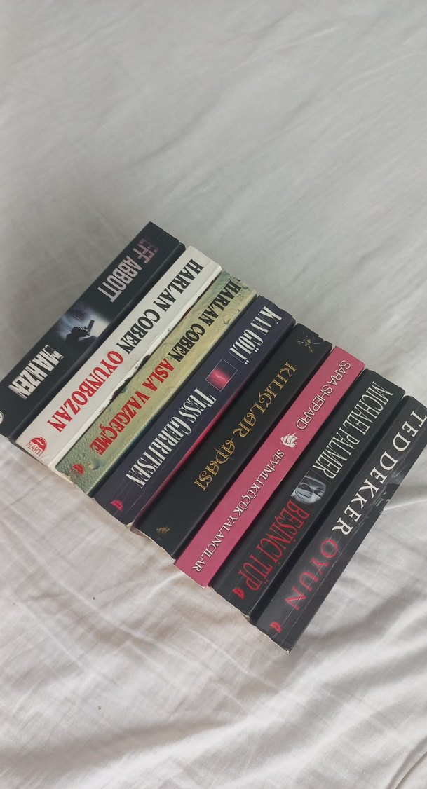 TANESİ 50 TL Eski basım Harlan Coben ve Tess Gerritsen gibi yazarların romanlarından oluşan çeşitli bir kitap seti. Gerilim ve gizem türlerinde eserler içerir.