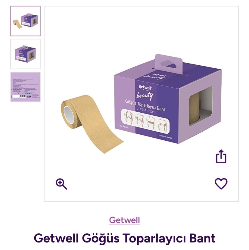 Getwell markasının bej renkli, desen içermeyen, yumuşak dokulu göğüs toparlayıcı bantı şekillendirme ve destek sağlar.