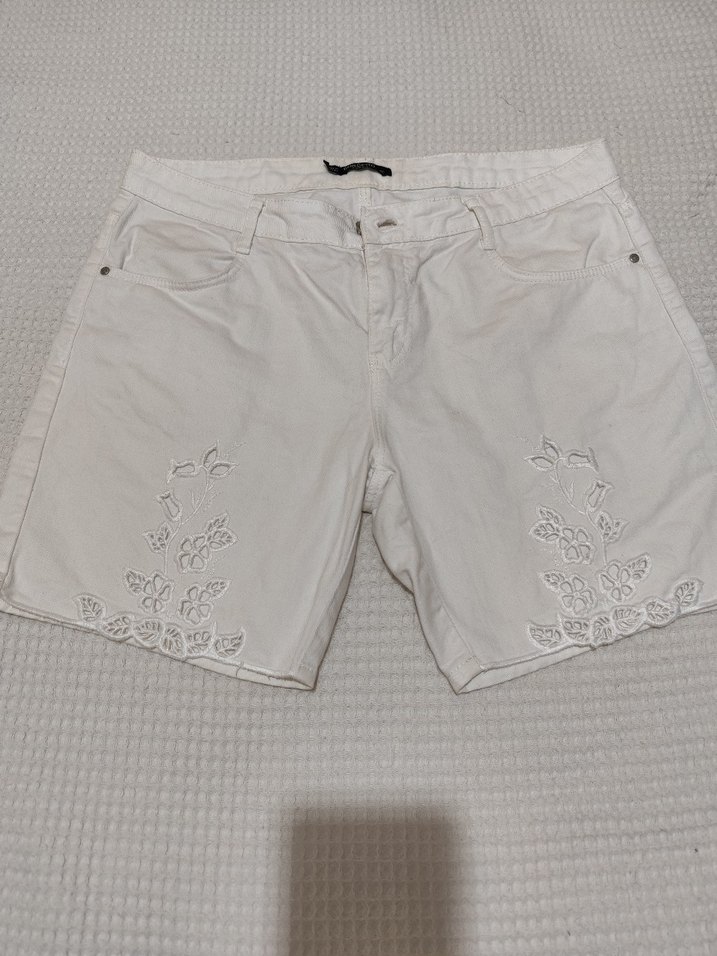 Gevşek Kesim Beyaz Mini Nakışlı Şort