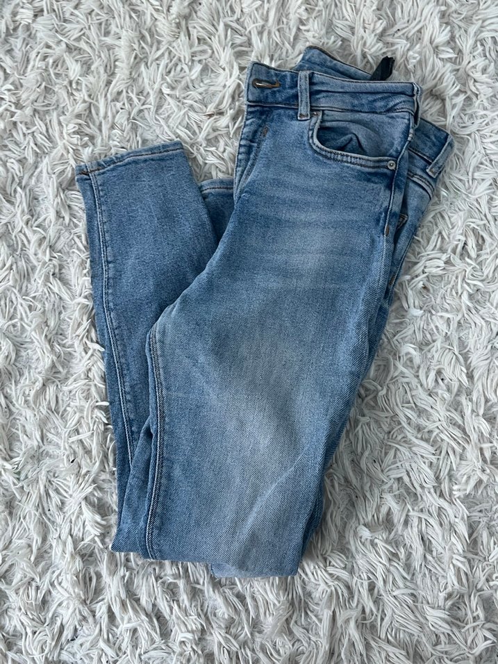 Gevşek kesim, gri tonlu mavi kot pantolon, tokalı detaylarla rahat ve günlük kullanıma uygun tarz sunar.