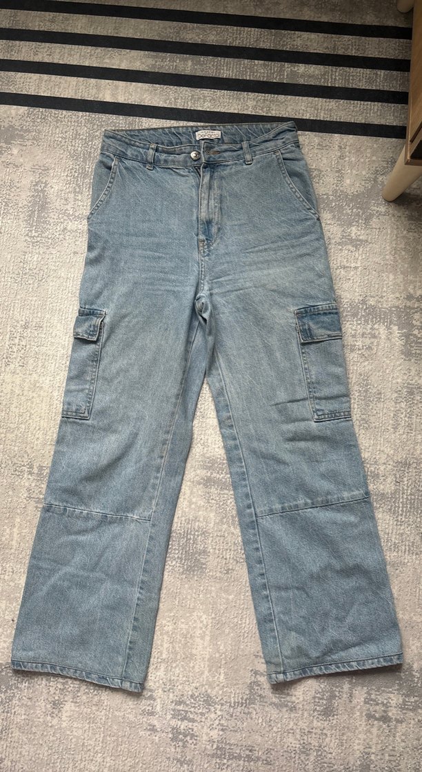 Gevşek kesim, gri midi kot pantolon, sokak modasına uygun ve cep detaylarıyla rahat şıklık sunar. Günlük kullanıma uygundur.