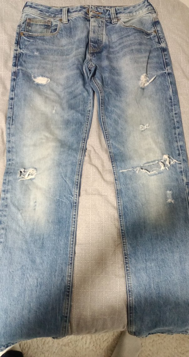 Gevşek kesim, tokalı kadın kot pantolon. Mavi-gri tonlarda, normal boy ve yıpranmış görünümlü, günlük sokak stili için uygun.