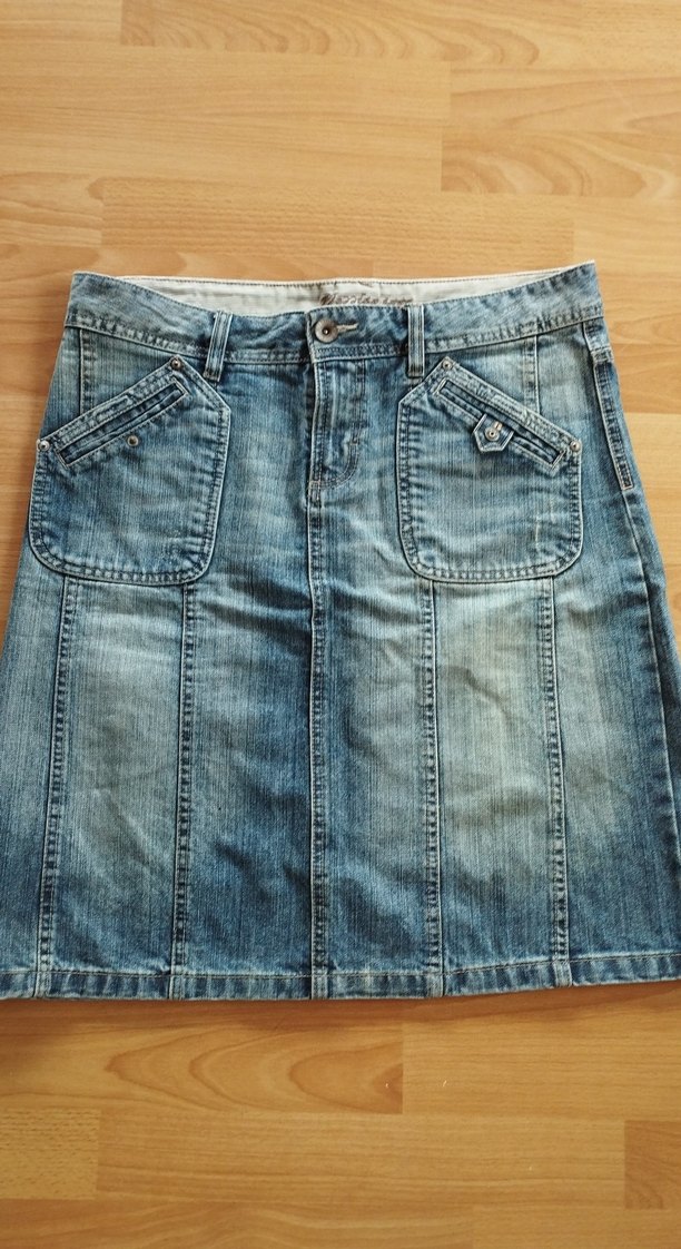 Bu mavi denim midi etek, bel detaylı ve gevşek kesimlidir. Günlük kullanıma uygun, cepli ve desensiz sade bir tasarıma sahiptir.