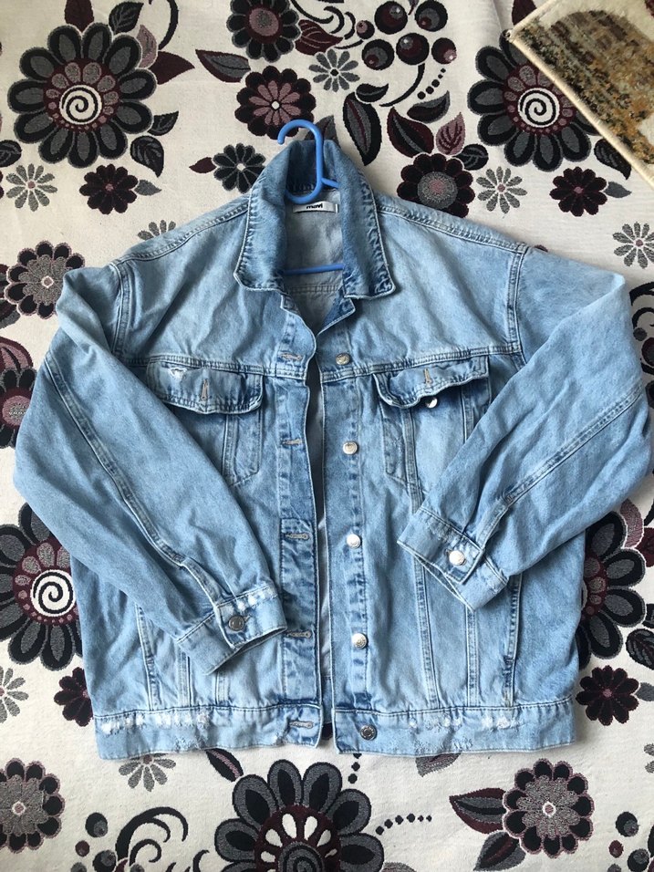 Gevşek kesim, uzun kollu, düğmeli mavi kot ceket. Notlu yaka detaylı, günlük kullanıma uygun rahat bir sokak stili ürün.