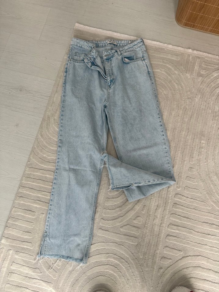 Gevşek kesim midi uzunlukta, pastel tonlarda günlük rahat sokak tarzı için uygun denim kadın jean. Konforlu ve şık, rahat bir stil sunar.