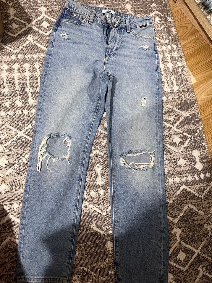 Gevşek kesim, midi boyunda gri tonlarında mavi denim kadın kot pantolon, tokalı ve yırtık detaylı, günlük rahat stil için uygun. Sinirli giydim olmadigi icin satiyorum.