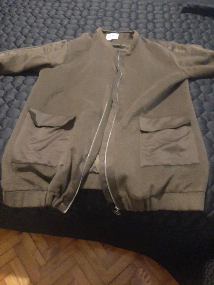 Gevşek kesim, midi uzunlukta kadın ceketi, fermuarlı ön ve yaka detayına sahip. Uzun kollu, cep detaylı, kahverengi-gri tonlarında yumuşak ve sıcak kumaştan üretilmiştir.