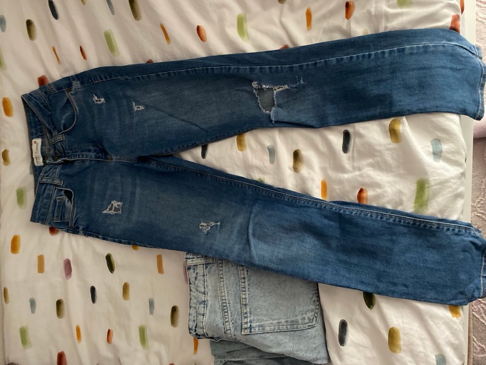 Gevşek kesim, toka detaylı midi uzunlukta mavi kot pantolon. Dayanıklı denimden üretilmiş, günlük kullanıma uygun sade ve rahat bir tarz sunar.