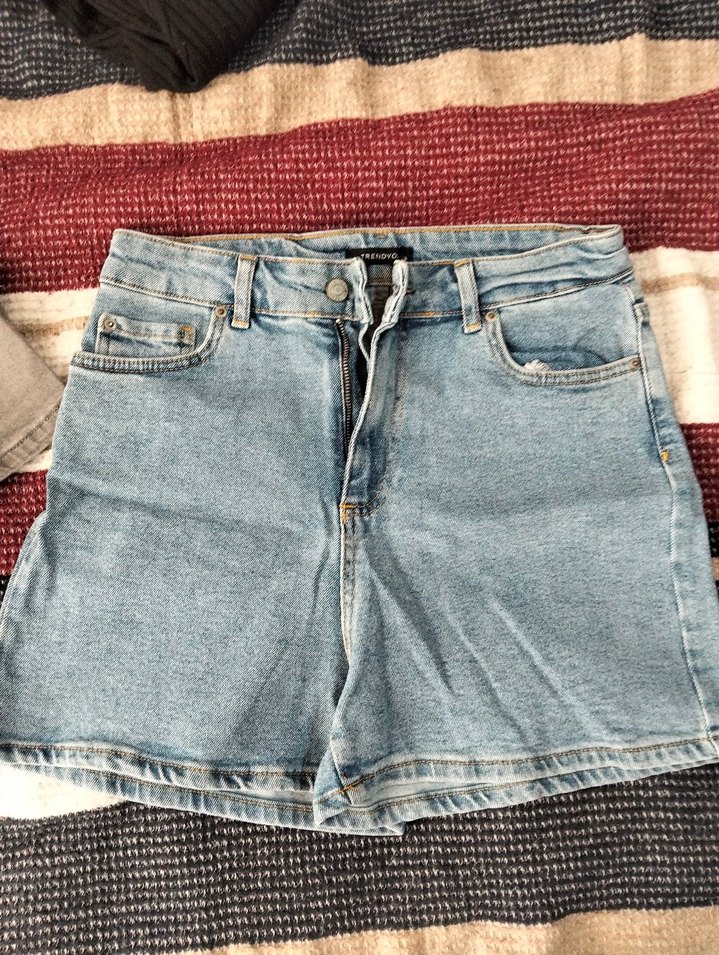 Gevşek kesim, günlük sokak stili için mavi tonlarında mini denim şort. Trendy ve zahmetsiz şıklık sağlar.