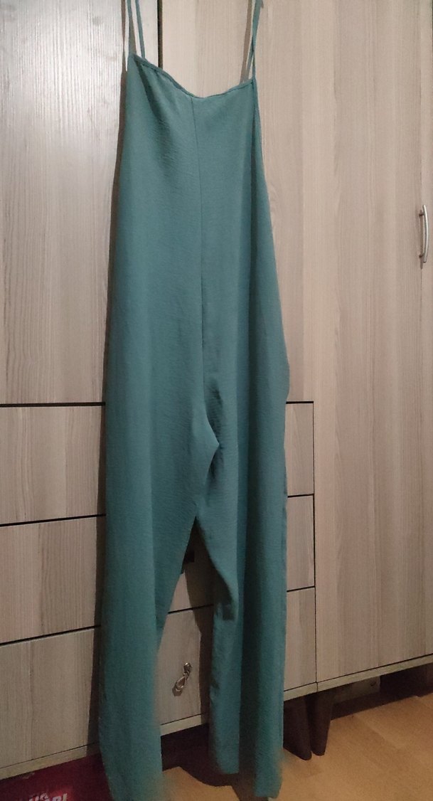 Gevşek Kesim Turkuaz Uzun Keten Tulum