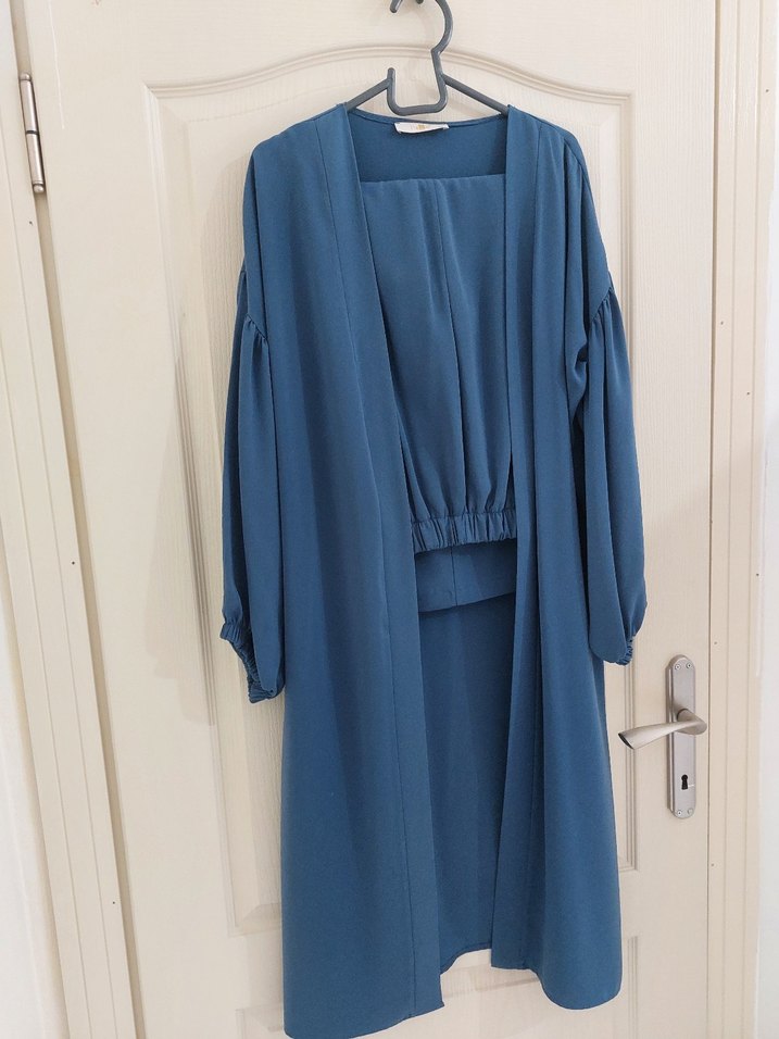 indigo mavisi 38 beden sayılı giyilmiştir kuşağı mevcut pantol boy 92 cm ceket uzunluk 110 cm