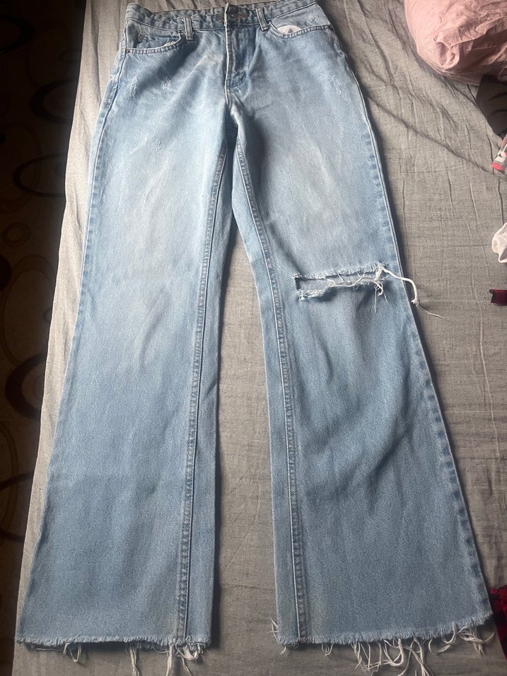 Gevşek Kesim Yırtık Detaylı Midi Kot Pantolon