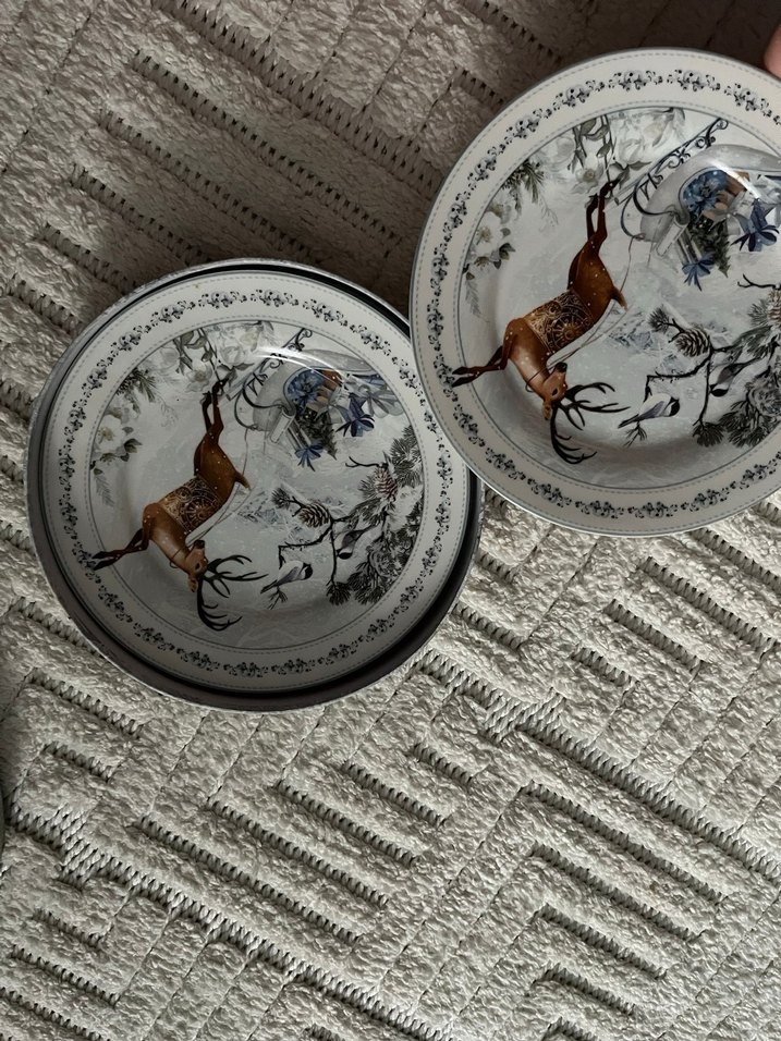 Geyik ve çiçek desenli kapaklı beyaz tabak,english home markadadır hiç kullanılmamıştır