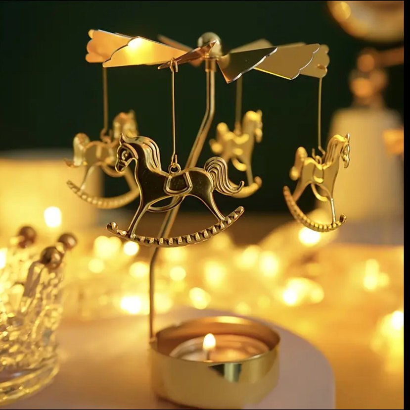 Bir adet mum hediyelidir Hafif altın renkte, dönen bir mumluk. Hareketiyle hoş bir atmosfer yaratır.