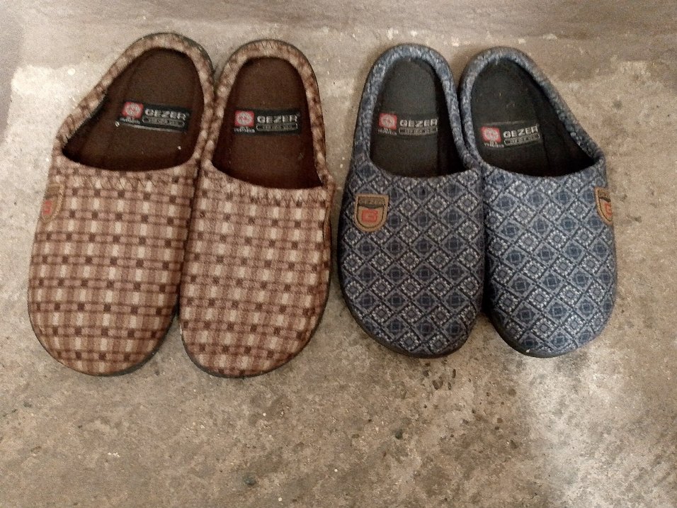 Adet fiyatıdır. Gezer marka, Desenli, kahverengi ve gri tonlarda erkek ev terlikleri, tokalı detaylı. İç mekan kullanımı için rahat ve konforlu. 41 - 43 numara Ev terlikleri. Çok az kullanıldı.