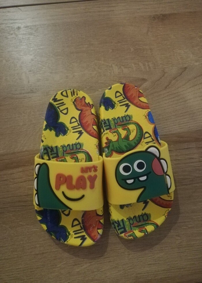 Gezer dinozorlu çocuk terlik. 28 numara. Evde denendi ve küçük geldiği için kullanılmadı.