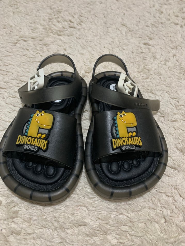 Siyah renkli, baskılı dinozor desenli ve ayarlanabilir kayışlı, kauçuk malzemeden yapılmış erkek çocuk terliği. Hediye geldi fakat hiç kıllanmadık
