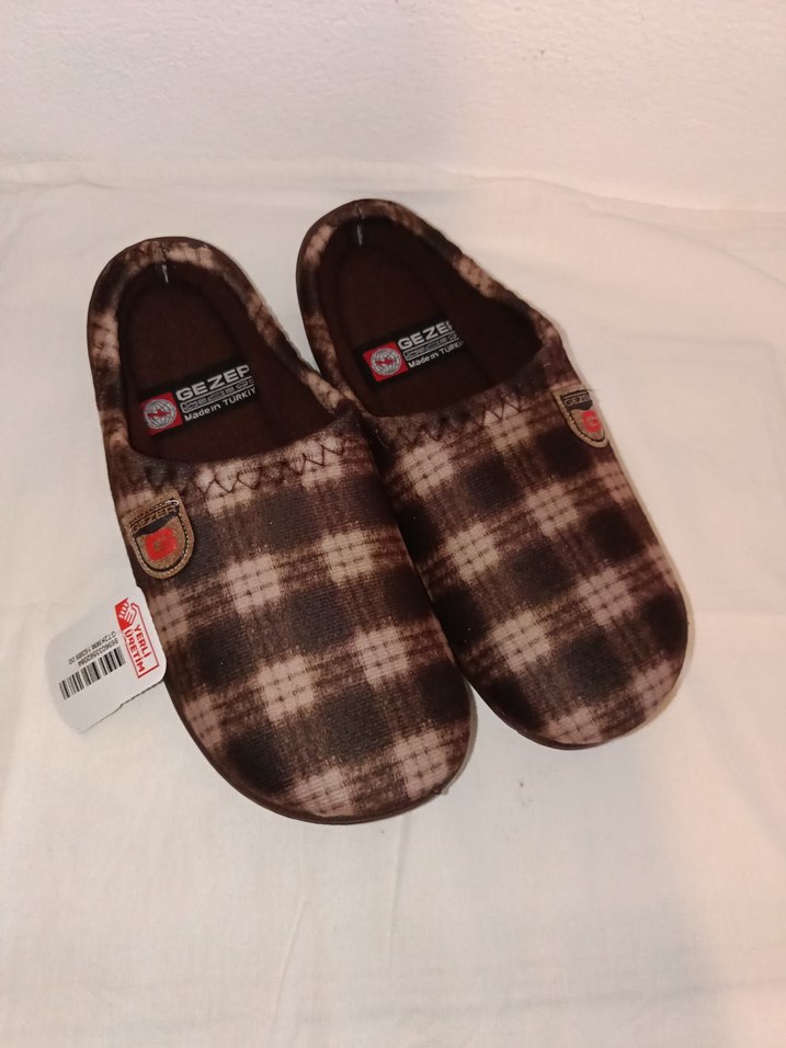 Erkekler için koyu kahverengi kareli desende sıcak terlikler. Rahat ve konforlu iç mekan kullanımı için uygundur. Gezer marka 45 numara erkek ev terliği. (41-42-43-45 numaraları kaldı)