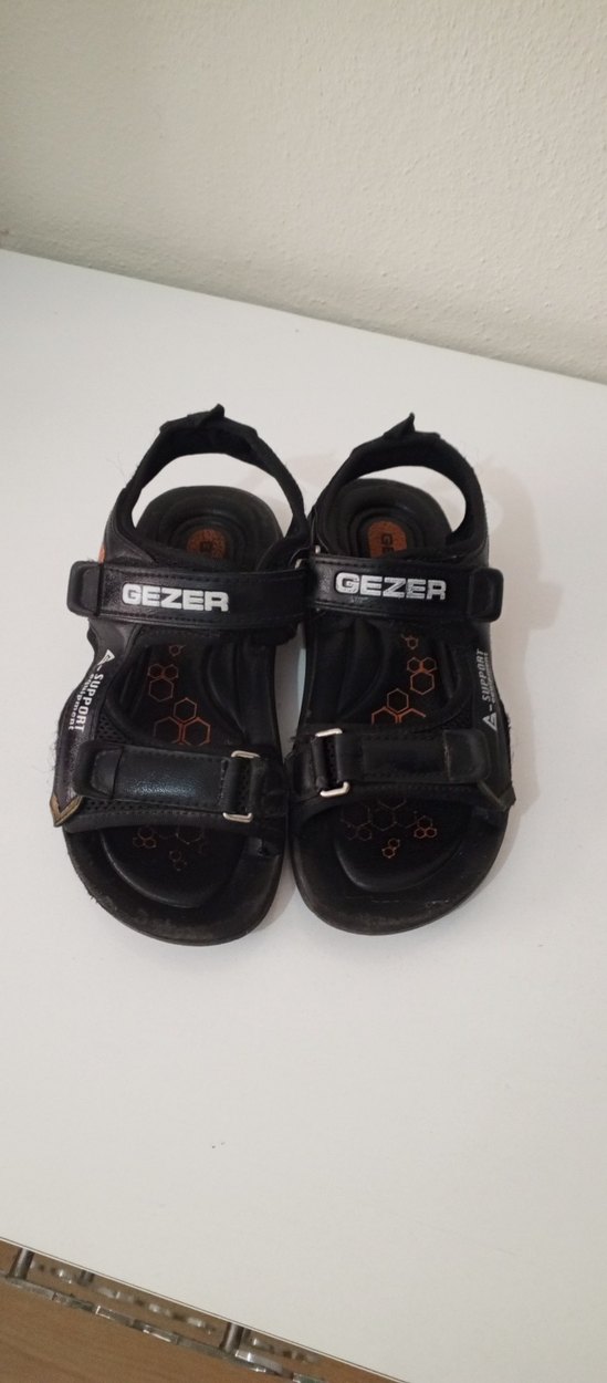 GEZER marka siyah biker tarzı sandaletler, kemerli bantları ve koyu zebra desenine sahip. Dayanıklı kauçuk malzemeden üretilmiştir, rock punk havası için ideal. fazla kullanilmadi yeni sayılır