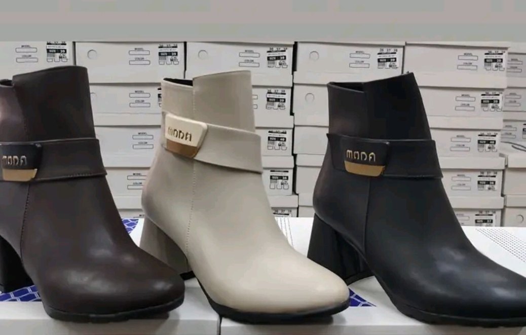 Ghenwa markasının siyah deri, tokalı, kalın topuklu kadın botu, iş ortamı için cesur ve modern bir tarz sunar.