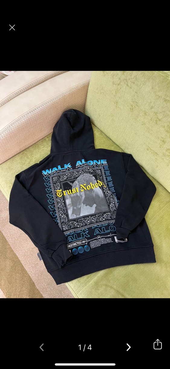 Bu siyah kadın sweatshirtü kapüşonlu, uzun kollu ve bol kesimdir. Arkasında "Walk Alone" ve "Trust Nobody" yazılı baskı bulunur. Yumuşak ve sıcak kumaştan yapılmıştır.