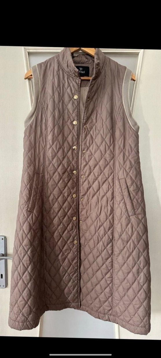Düğmeli, bej renkli, kadın yeleği. Günlük kullanım için uygundur.38 40 beden için uygun iki kol arası 50 boyu 105 civarı